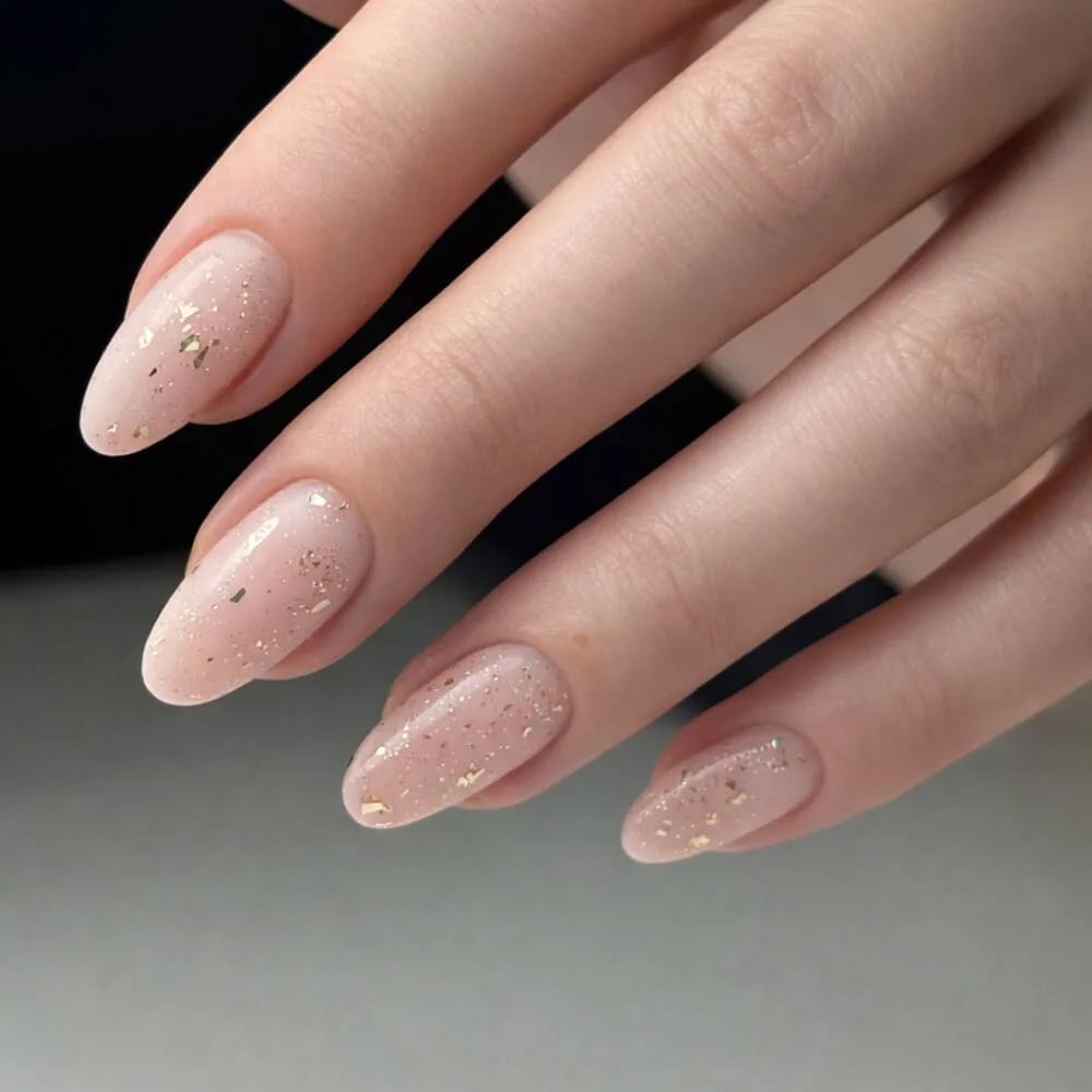 ✔ High Shine Topcoat met rosegouden flakes